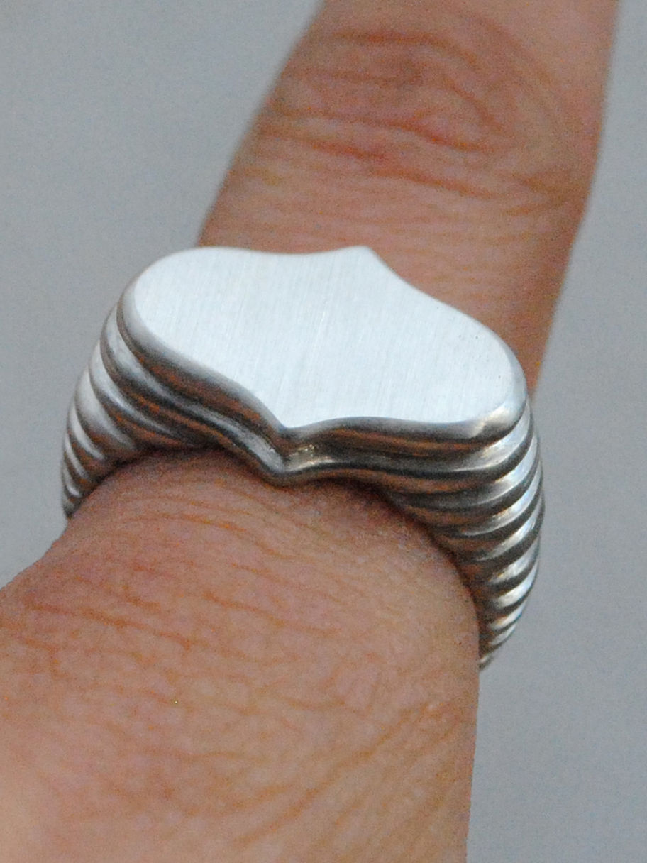 Esta es la variación "rápida" del anillo pauta, lo que significa que el intervalo de lineas que tiene en su contorno es más tupido, es decir; tiene lineas más delgadas y en mayor cantidad que la variación lenta. Un anillo con presencia, movimiento e intensidad ;)
